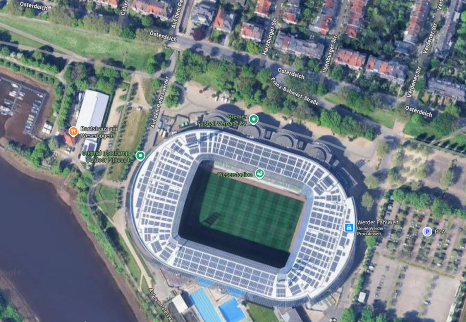 ACHTUNG: Das Gebiet rund um das Weserstadion ist bei allen Heimspielen von Werder Bremen ab zweieinhalb Stunden vor Anstoß bis kurz nach Spielbeginn für Autos gesperrt. Am Spieltag stehen am Weserstadion keine Parkplätze zur Verfügung.