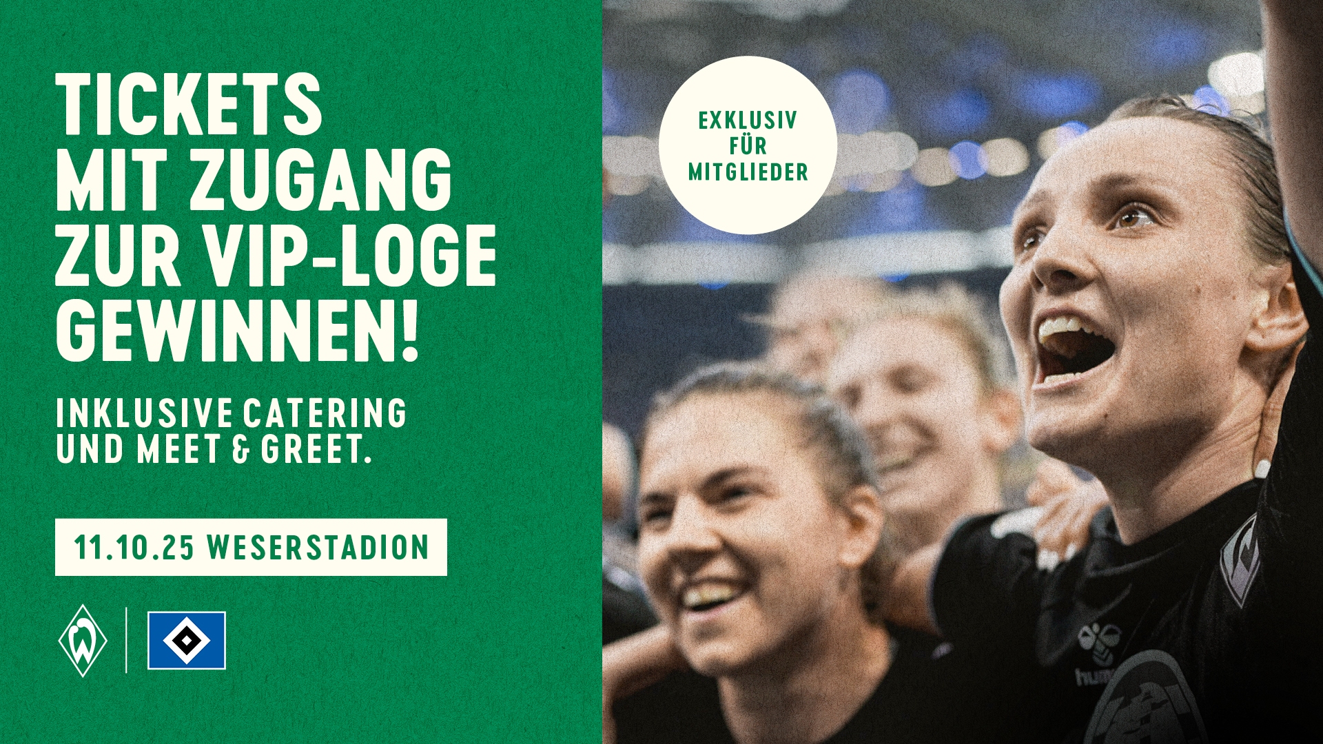 Außerdem gibt es ein exklusives „Meet & Greet“ mit einer Spielerin der WERDERFRAUEN. Wer dabei sein möchte, muss lediglich die vier Quizfragen unter https://www.werder.de/mitglieder/mitgliederaktionen/mitglieder-events-aktionen richtig beantworten – schon landet der Name im großen Lostopf. Die exklusive Mitgliederaktion läuft ab sofort bis einschließlich 29.09.2025. Jetzt gleich reinklicken und mit etwas Glück die WERDERFRAUEN live beim Nordderby im Weserstadion unterstützen!