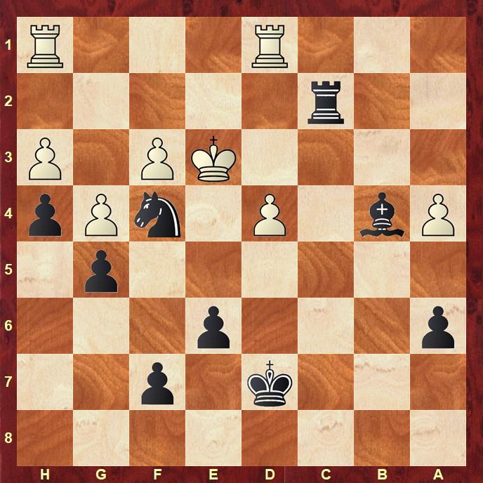Auch Henry konnte seine zunächst schlechte Stellung retten. In der Endstellung hätte er sogar eine leicht bessere Stellung gehabt, wenn der Gegner das Remis nicht forciert hätte. Damit stand es 2,5:2,5 – und es lief nur noch eine Partie.